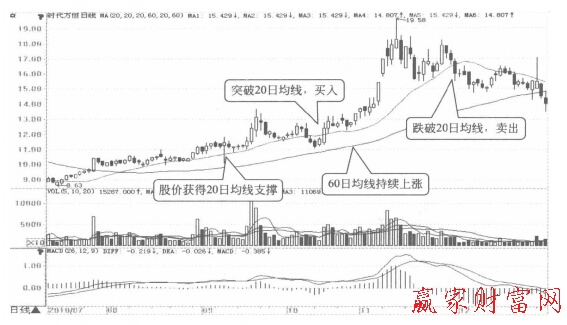 10月20日,股價向上突破20日均線。這說明股價進入上漲行情,此時是投資者波段買入股票的機會。11月30日,股價經過一段整理行情后跌破了20日均線。這說明股價進入下映行情,此時是投資者波段賣出股票的機會。