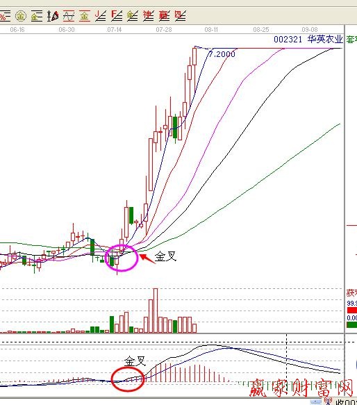 舉例說(shuō)明:002321在7月16日同時(shí)發(fā)出短期均線金叉形成多頭排列和MACD金叉信號(hào),這種‘上下同金叉信號(hào)’,更多的預(yù)示著一種看漲信號(hào)。同時(shí),成交量放大,在上下同金叉發(fā)出后,主力大單有大幅入倉(cāng)動(dòng)作,這種信號(hào)更進(jìn)一步加強(qiáng)了可能拉升的預(yù)期。隨后,10幾個(gè)交易日,該股確實(shí)發(fā)生了一波超過(guò)30%的拉升幅度。