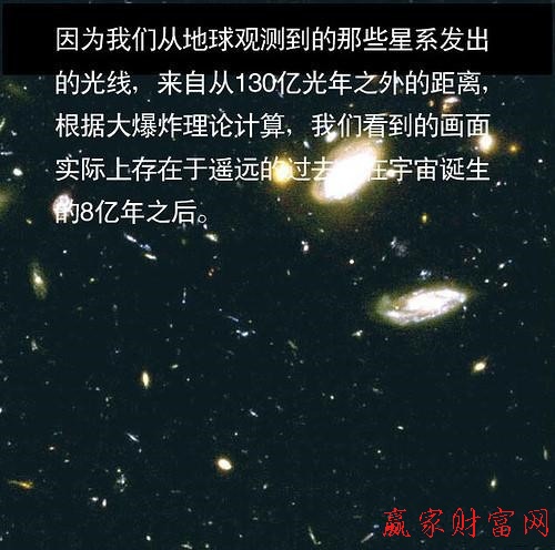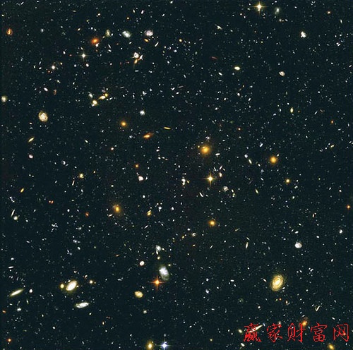 看完這些圖,你覺得地球很小很小是吧?沒錯(cuò),地球?qū)τ阢y河系來說,只是個(gè)微不足道的小行星。不過在我們的尺度里,所有你能觀測到的星體還都只是在銀河系范圍內(nèi)的。下面讓我們來看看在其他星系里有什么?太空望遠(yuǎn)鏡哈勃,將它的鏡頭對(duì)準(zhǔn)夜空里的一個(gè)小角落。