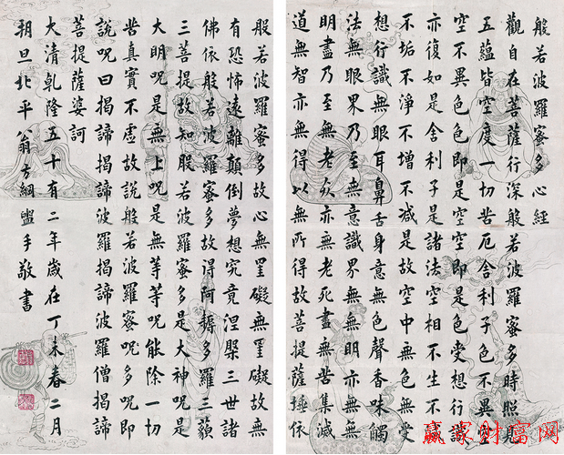 觀自在菩薩,行深般若波羅蜜多時。照見五蘊皆空,度一切苦厄。舍利子,色不異空,空不異色,色即是空,空即是色,受想行識,亦復如是。舍利子,是諸法空相,不生不滅,不垢不凈,不增不減。是故空中無色,無受想行識,無眼耳鼻舌身意,無色聲香味觸法,無眼界,乃至無意識界。無無明,亦無無明盡,乃至無老死,亦無老死盡。無苦集滅道,無智亦無得。以無所得故,菩提薩埵,依般若波羅蜜多故,心無掛礙。無掛礙故,無有恐怖,遠離顛倒夢想,究竟涅槃。三世諸佛,依般若波羅蜜多故,得阿耨多羅三藐三菩提。故知般若波羅蜜多,是大神咒,是大明咒,是無上咒,是無等等咒,能除一切苦,真實不虛。故說般若波羅蜜多咒,即說咒曰:揭諦揭諦,波羅揭諦,波羅僧揭諦,菩提薩婆訶。