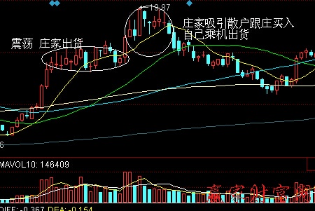 若一只股票在高位連續幾天放出巨量,不過股價的上漲幅度卻一天比一天小的時候,說明莊家在抬高出貨,K線上的具體表現是十字星,成文量不斷放大。
