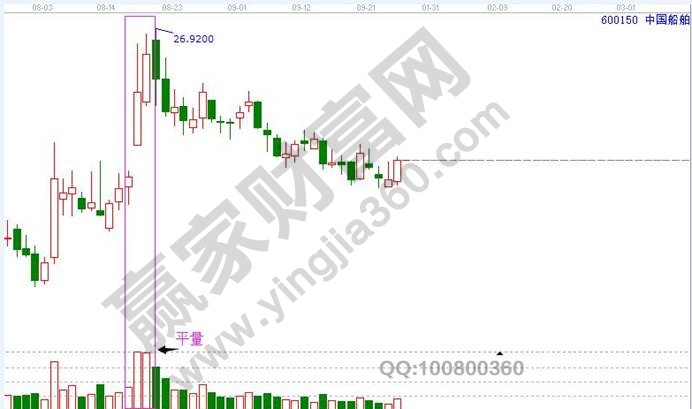例如:中國船舶在2017年8月17日、18日兩天交易出現平量,兩天的量柱幾乎是完全一樣。股價第二天市場高開后低走回落。