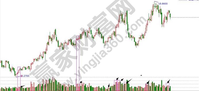我們知道試盤和主動的攻擊買入是有一定區別的,尤其是如果對比倍量柱,問題就更明顯了。平量的出現代表著一種弱勢,一種勢均力敵,是原有趨勢的轉緩與結束前兆。當然,其意義同量柱的高低,及出現的價格位置也有一定的關系,筆者認為,如果市場高位活躍,量柱較大,此時出現平量,應保持謹慎,前期的上漲趨勢很有可能將要在短期結束,而如果平量出現在上漲中期或階段低位,并處于關鍵的價格位支撐附近,平量出現后,可留意接下來的走勢,如果市場縮量進行調整,則是重新入場的時機。