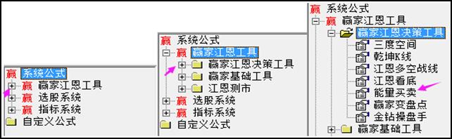 1.在K線界面左邊的空白處雙擊鼠標(biāo)左鍵調(diào)出左側(cè)工具欄,點(diǎn)擊系統(tǒng)公式前面的加號(hào)——贏家江恩工具前面的加號(hào)——贏家江恩決策工具前面的加號(hào),即可找到。