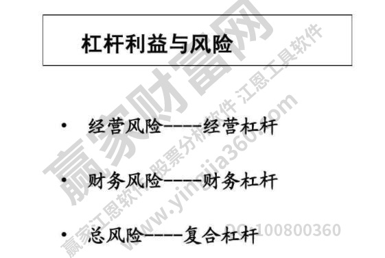 財務(wù)杠桿是企業(yè)利用負(fù)債調(diào)節(jié)權(quán)益資本收益的一種手段,財務(wù)杠桿系數(shù)越大,財務(wù)風(fēng)險越大。相反,財務(wù)杠桿系數(shù)越小,財務(wù)風(fēng)險越小。風(fēng)險是一個與損失、不確定性或可能的損失相關(guān)的概念,財務(wù)風(fēng)險是指企業(yè)使用債務(wù)資本導(dǎo)致未來收益不確定時所承擔(dān)的額外風(fēng)險,如果企業(yè)經(jīng)營狀況良好,企業(yè)的投資收益率大于債務(wù)利率,就會獲得財務(wù)杠桿收益。但是如果企業(yè)經(jīng)營狀況不佳,企業(yè)的投資收益率小于債務(wù)利率,就會出現(xiàn)財務(wù)杠桿損失,嚴(yán)重的甚至導(dǎo)致企業(yè)破產(chǎn)。這種不確定性就是企業(yè)在使用債務(wù)時所承擔(dān)的財務(wù)風(fēng)險。進(jìn)行股票分析好的股票軟件必不可少,點擊就有各種軟件供您挑選。