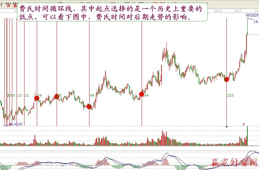 費(fèi)波納奇數(shù)列也就是常說的神奇數(shù)字,通過對前面的學(xué)習(xí),我們已經(jīng)知道神奇數(shù)字可以用以判斷股價(jià)的支撐阻力。而除此之外,神奇數(shù)字對股價(jià)時(shí)間周期上的影響也是非常大的,我們同樣可以利用神奇數(shù)字來計(jì)算時(shí)間上的轉(zhuǎn)折點(diǎn)。