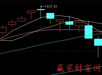 4.由于股價走勢趨緩,短期移動平均線亦跟著走平,股價在移動平均線上下游走,最后終于呈緩步下跌之走勢。