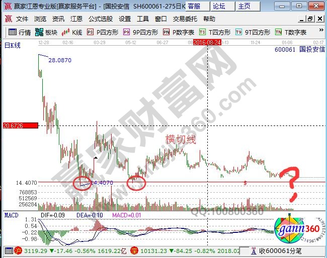 4.判斷上突(下破)趨勢(shì)線的一個(gè)依據(jù)為,股價(jià)與趨勢(shì)線形成的角度,角度越大突破的概率越大,角度越小,突破的幾率越小。