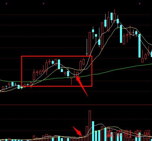 (3)當(dāng)股價回落不久,5日、10日均線再次金叉向上形成鴨嘴部