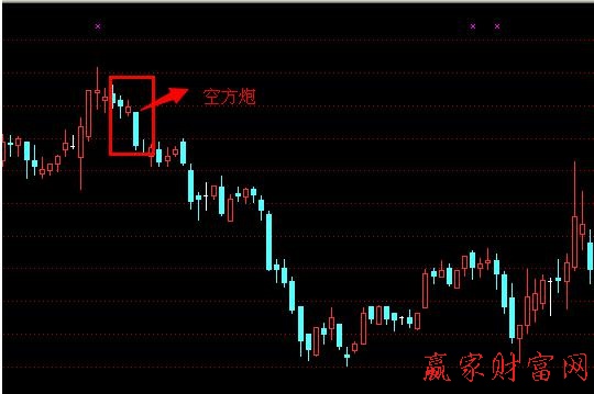 空方炮后一般是空方力量的爆發式的出現,短期下跌的可能性極大,又稱空方開炮。