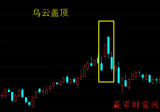 烏云蓋頂形態是K線圖中重要的頂部反轉形態之一,這種形態由兩根K線組成,它們一般出現在上升趨勢之后,在有些情況下也可能出現在水平調整區間的頂部。第一根K線是一根大陽線,市場處于上升趨勢中,顯示多方完全掌控局勢;第二根K線是跳空高開但是沒有繼續上沖,而是一路下跌,收盤于當日最低價附近,并且收市價明顯地向下扎進了第一天的實體內部,深入到前一天K線實體的一半以下。意味著市場動力已經耗盡,空方掌控大局。同時可以結合量能來判斷,如果量能很大,那么趨勢反轉的幾率也就越大。
