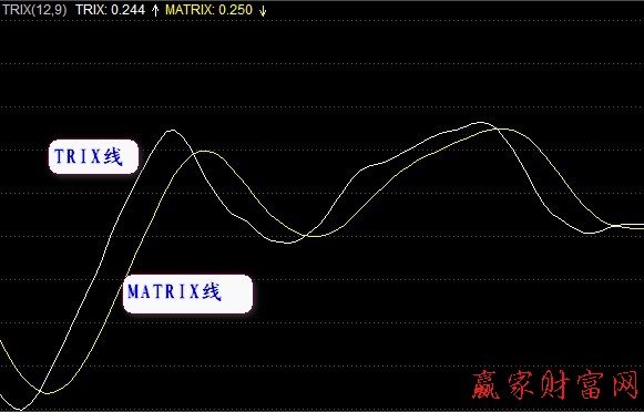 TRIX指標是三重平滑平均線指標的簡稱,也是根據移動平均線理論,該指標包括兩條指標線,分別是TRIX線和MATRIX線。其中TRIX線波動較快,MATRIX線波動較慢。