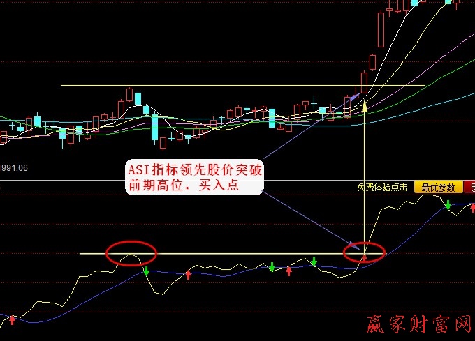 ②如果ASI線向上突破前期高點的額時候,則是一個明確的買入信號。