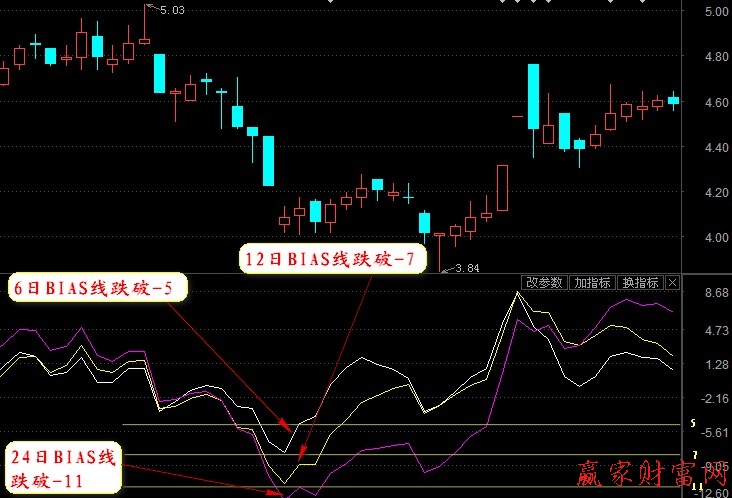 ① BIAS指標表示的是當日收盤價與相應周期移動平均線之間的差距。如果股價正乖離大到一定的程度時,則說明短期獲利較大,獲利回吐的可能性也越高;如果股價的負乖離大的一定程度時,空頭回補的可能性則越高。