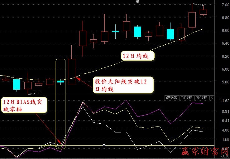 Ⅱ 股價突破12日線同時12日BIAS線突破零軸買入股票