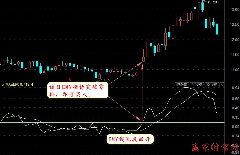 ② 當EMV線突破零軸時,買入股票;當EMV線跌破零軸時,賣出持股;