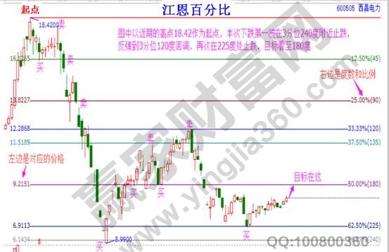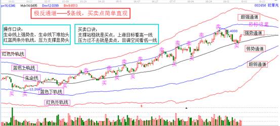 首先,什么價格買賣——在支撐位買,在壓力位賣。先記住一句話:“支撐站穩就是買點,壓力過不去就是賣點”。當股價從高位跌落到支撐線附近,則此支撐位即是買點;當股價從低位上漲到壓力線附近,則此壓力位即是賣點。借助專業的價格分析工具,提前的計算出個股的支撐位及壓力位,那對應的就是買點與賣點。贏家買賣點分析工具,推薦學習:極反通道、江恩價格百分比、江恩波段百分比等。(參考下圖)