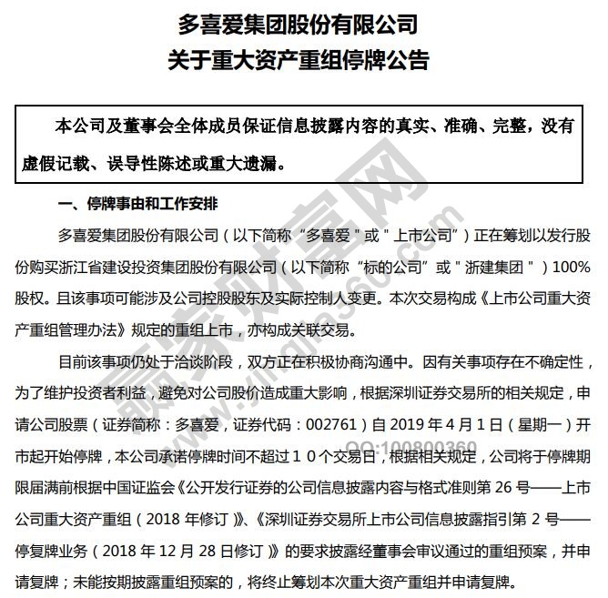 多喜愛(ài)集團(tuán)股份有限公司正在籌劃以發(fā)行股份購(gòu)買(mǎi)浙江省建設(shè)投資集團(tuán)股份有限公司100%股權(quán),該事項(xiàng)可能涉及公司控股股東及實(shí)際控制人變更。