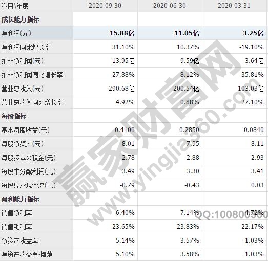 營業收入429.12億元人民幣,比去年增加27.04%;凈利潤39.06億元人民幣,比去年增加14.14%;毛利率26.83%,比去年增加1.11%;凈利潤率9.10%,比去年降了1.03%;凈資產收益率11.38%,比去年降了4.33%;總資產收益率4.23%,比去年降了2.03%。存貨周轉天數384.19天,比去年增加141.13天;預付賬款周轉天數5.85天,比去年增加0.65天;應收賬款周轉天數8.22天,比去年增加0.69天。