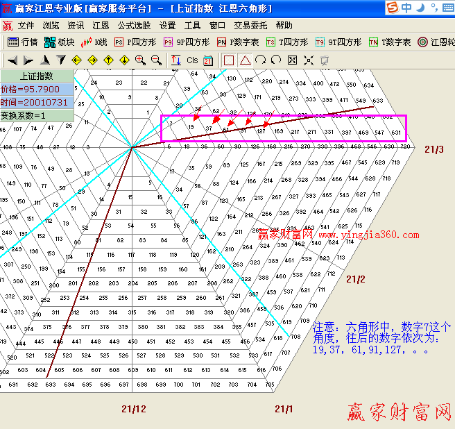 這里我們以江恩六角形為例,來一起鑒證下中國上證指數在江恩六角形中的神奇演繹!
