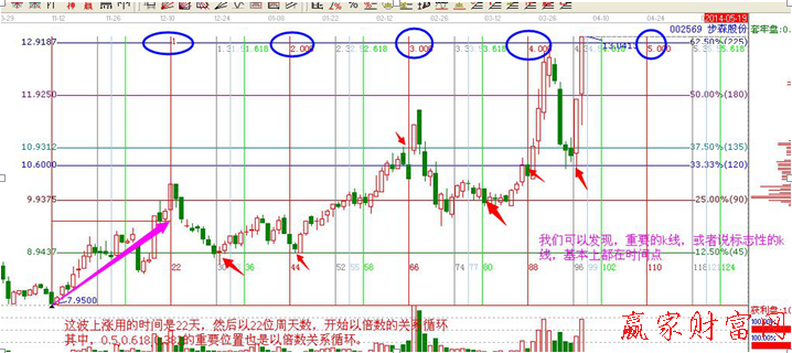 這個圖是時間和價格結合的圖,時間是自定義時間周期線,價格工具用的是江恩價格百分比。有句江恩名言是這樣的,“當時間和價格形成四方形,轉勢便迫在媚捷。”