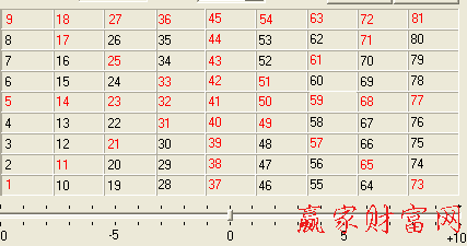 在這里先給大家介紹江恩數(shù)字表,江恩的數(shù)字表是江恩將數(shù)字沿垂直方向排列的四方形,主要用來預(yù)測價(jià)格的支撐位和阻力位。其種類多種,有數(shù)字6、9、12、19、20、27、36、52、90等為基數(shù)的九格四方形。九九四方形數(shù)字表繪制方法:從四方形的左下角,自下而上填寫1-9,從第二列下面繼續(xù)填寫10-18,依次類推直至填到81。如下圖: