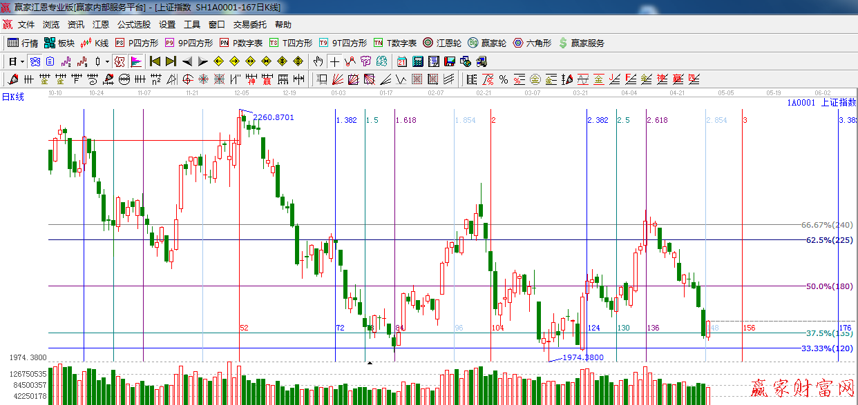 ★依據贏家江恩系統波段百分比提示:指數在135度-120度位置附近止跌企穩,下方支撐120度位置是 1989點,90度位置1954點。