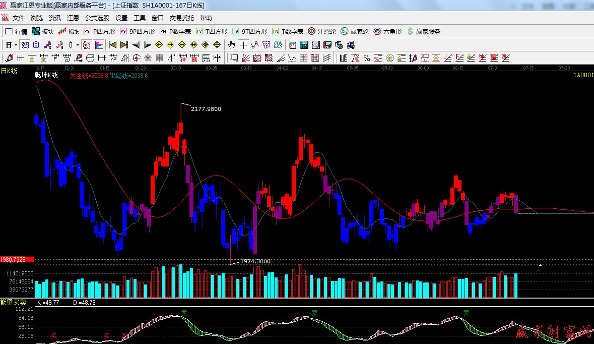 ☆依據(jù)贏家江恩系統(tǒng)能量買賣提示:紅色柱子轉(zhuǎn)變成做空綠色柱子,空頭占據(jù)優(yōu)勢。