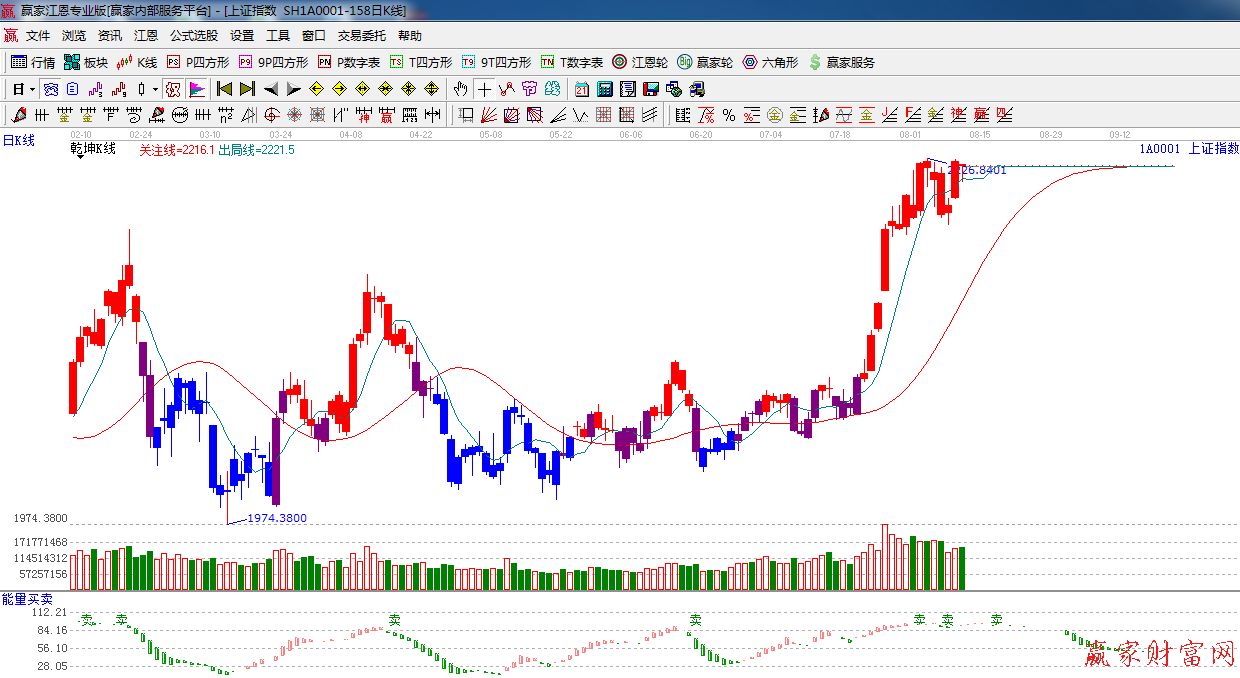 ☆依據贏家江恩系統能量買賣提示:處于高位超買位置,多空轉換節點處,并有“賣”字出現,短期謹慎看多。