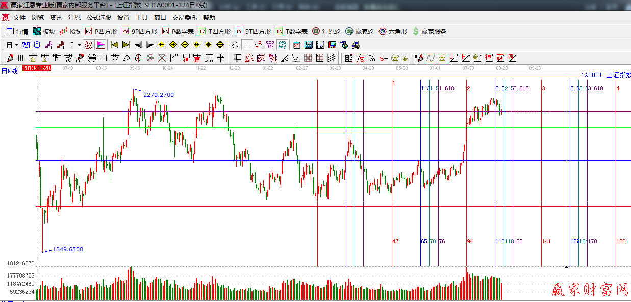 ☆依據贏家江恩系統波段百分比提示:周三大盤在六角形90度角度線2210一線下方,縮量震蕩,短期如不能收復,將去2170點尋求支撐。