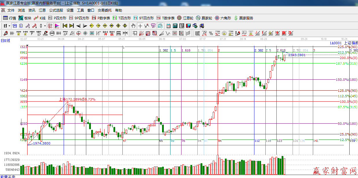 ☆依據贏家江恩系統黃金時間周期線提示:下一時間窗口是9月18日,9月25日。