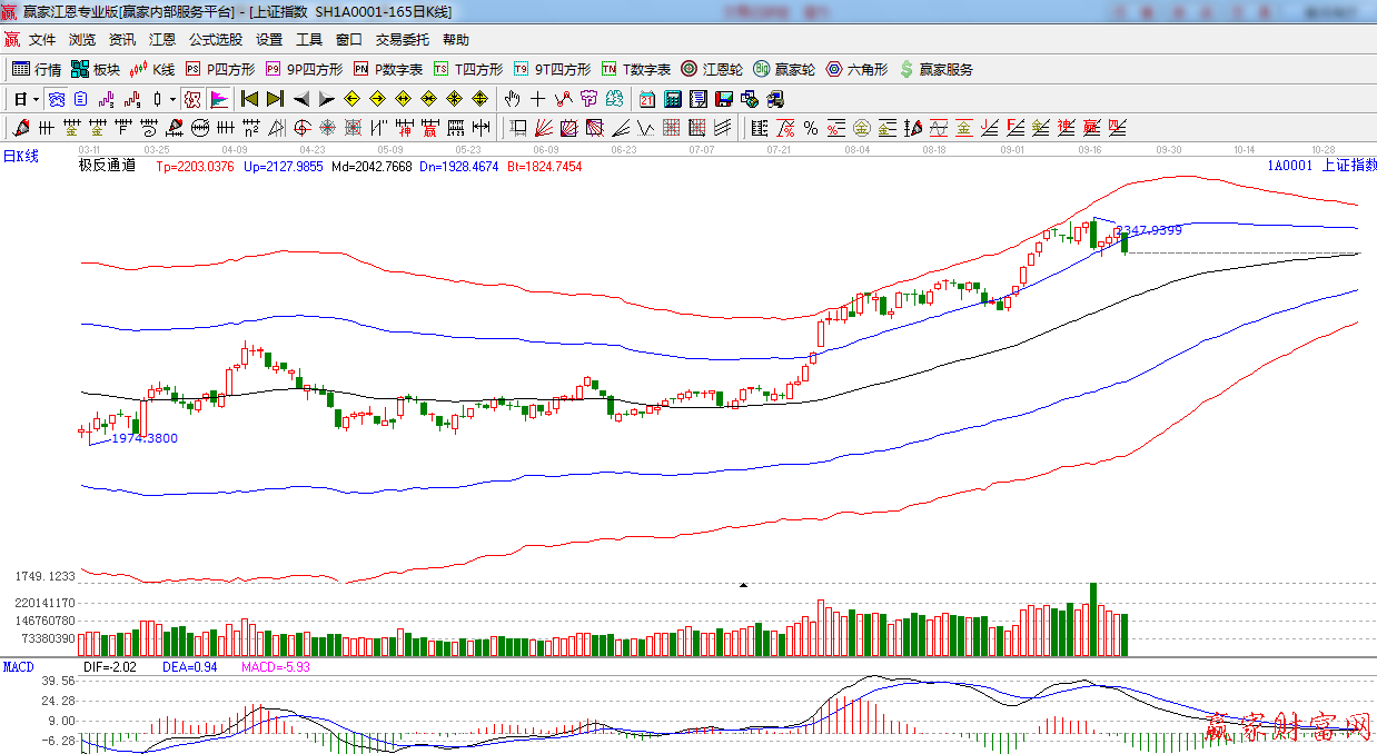 盤面上,鋼鐵、保險、銀行、航空等權(quán)重股表現(xiàn)低迷,僅有港口自貿(mào),旅游,油改小幅活躍,消息面,業(yè)內(nèi)人士分析,本周新股發(fā)行凍結(jié)資金可能在6000億元以上,加之國慶大假等因素,A股資金面將面臨嚴(yán)峻的考驗,技術(shù)面,前期分析中提到的周五最后一小時選擇短線方向,今日如期應(yīng)驗,至收盤形態(tài)上出現(xiàn)下降三法走勢,短期市場保持謹(jǐn)慎為主。