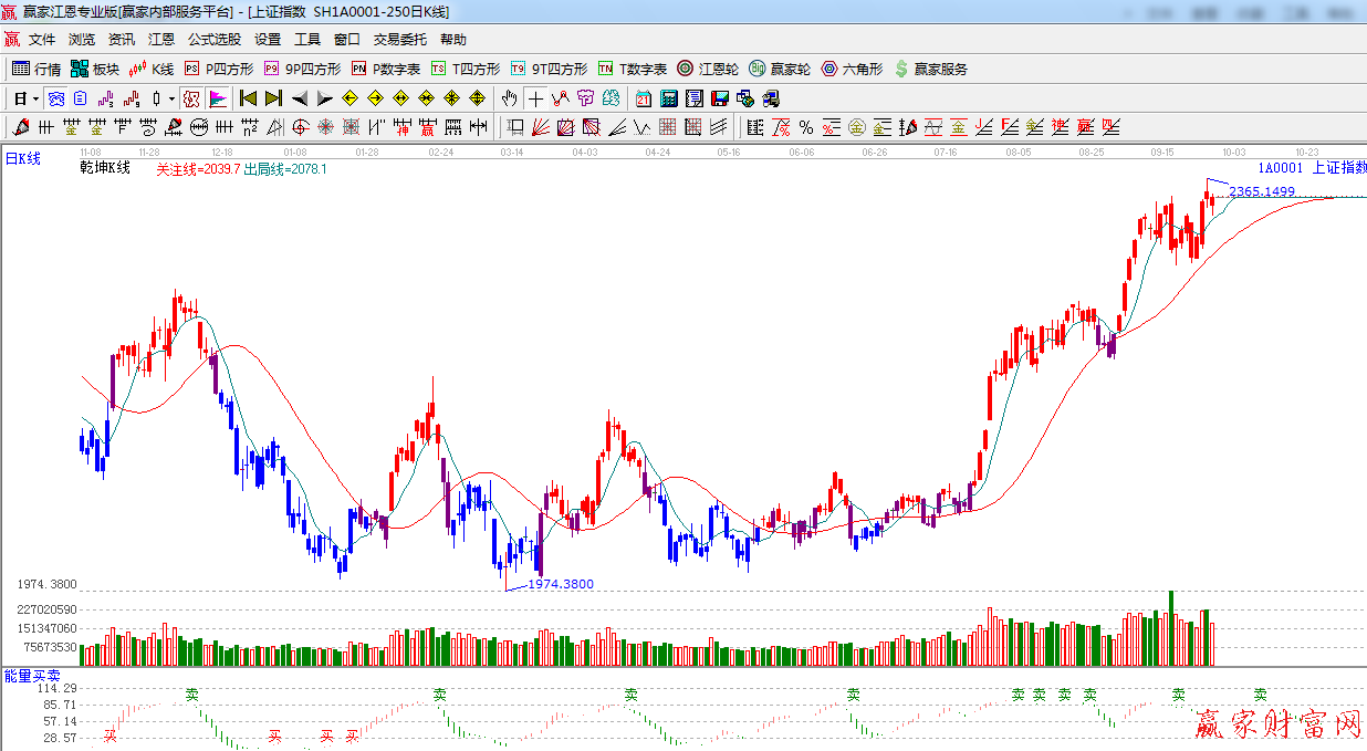 ★依據(jù)贏家江恩系統(tǒng)乾坤K線提示:綠色出局線之上,短線看多,波段看多。