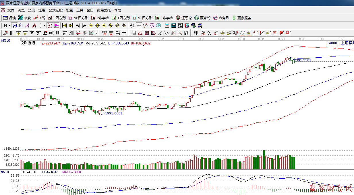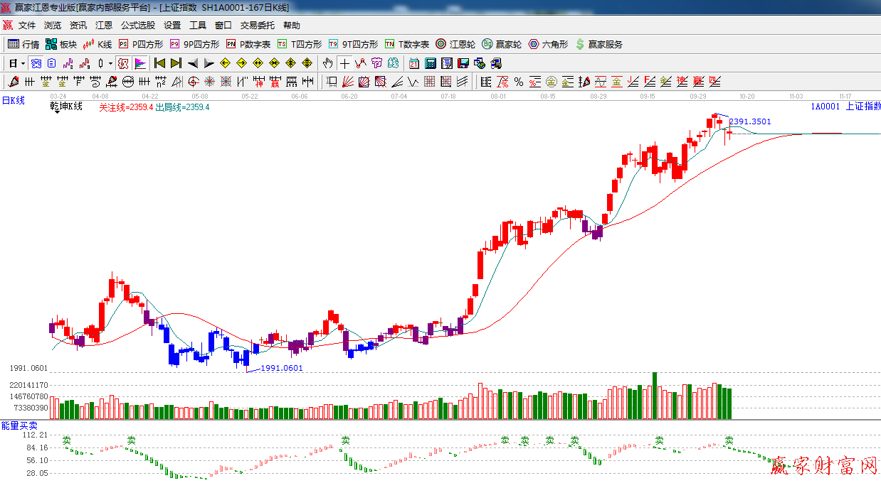 ☆依據(jù)贏家江恩系統(tǒng)黃金時(shí)間周期線提示:10月9日以及寒露時(shí)間節(jié)點(diǎn)之后,指數(shù)重心下移,短期可能將要調(diào)整幾天了,下一時(shí)間窗口10月22日。