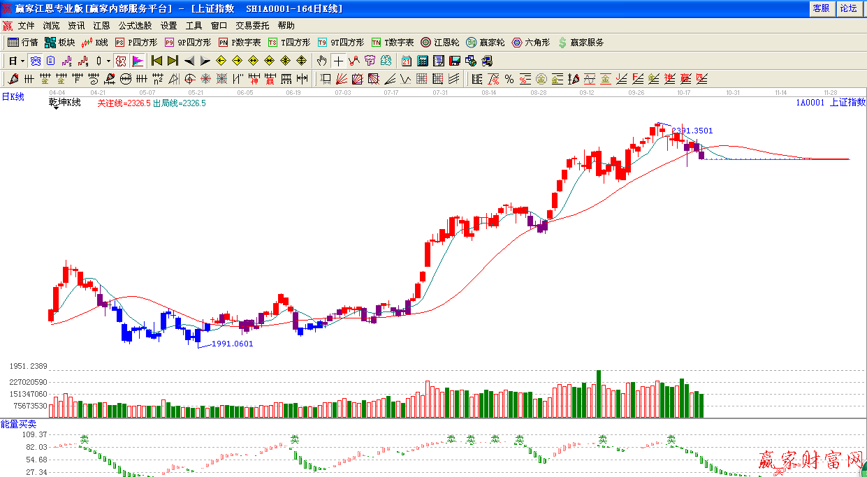 ★依據贏家江恩系統極反通道提示:在藍色外軌線之下,繼續回落,生命線支撐2290附近,短期依然保持謹慎態度。