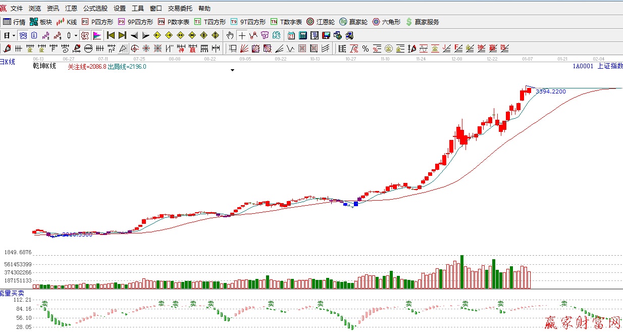 ★依據贏家江恩系統乾坤K線提示:日k線處于紅色區域,短線出局線上方,波段趨勢看多。