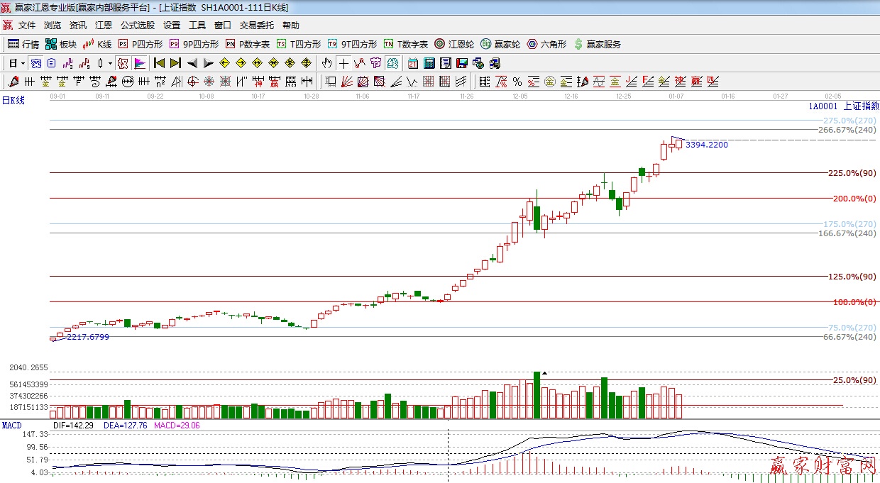 江恩看盤綜述:依據贏家江恩技術工具分析得出:今日早盤滬指圍繞江恩180度線震蕩整理,盤中受權重回落影響快速走低,尾盤在石化雙雄的推動下回升,依據江恩軟件價格分析上方阻力位依然是江恩240度—270度(3440—3490點),盤面走勢看,短期指數逼空勢頭或將減弱,仍以高位震蕩為主,操作上,適當控制倉位,精選前期跌幅較大題材股。