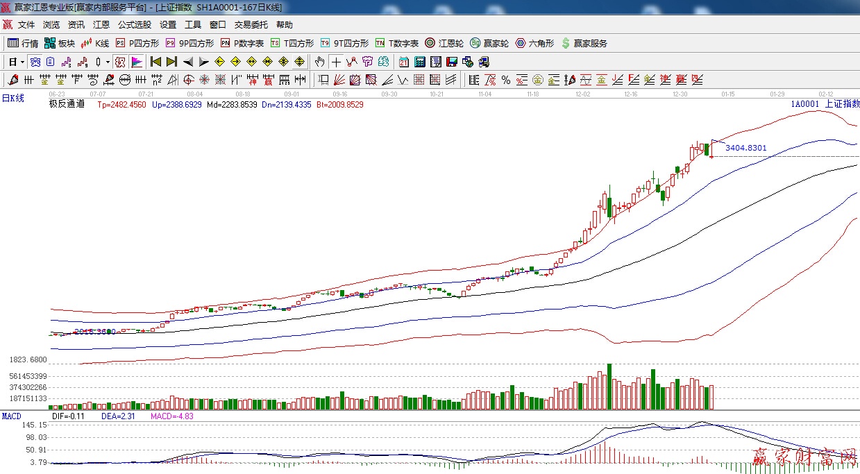 ★依據(jù)贏家江恩系統(tǒng)極反通道提示:滬指沖高回落,帶上影線十字星報收,短期謹(jǐn)慎為主,如不能收復(fù)短線短期有震蕩回踩藍(lán)色外軌線。