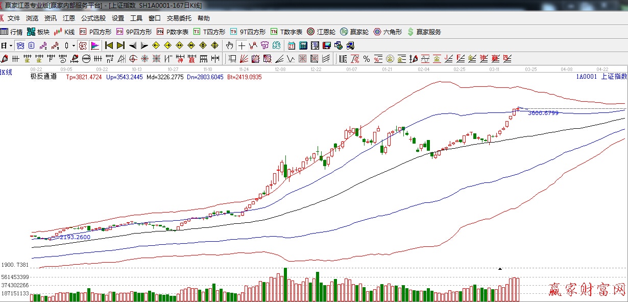 江恩看盤綜述:依據(jù)贏家江恩技術(shù)工具分析得出:今日滬指在3600點(diǎn)整數(shù)關(guān)口之下,極反通道藍(lán)色外軌線之上,窄幅震蕩收十字星,指數(shù)在此位置震蕩屬于正常行為,整理后有望繼續(xù)上行。下一阻力位是江恩0度,3635點(diǎn),90度,3783點(diǎn),煤炭、有色等滯漲藍(lán)籌股,可逢低重點(diǎn)關(guān)注,另外,國(guó)資改革,一路一帶等板塊可持續(xù)關(guān)注。