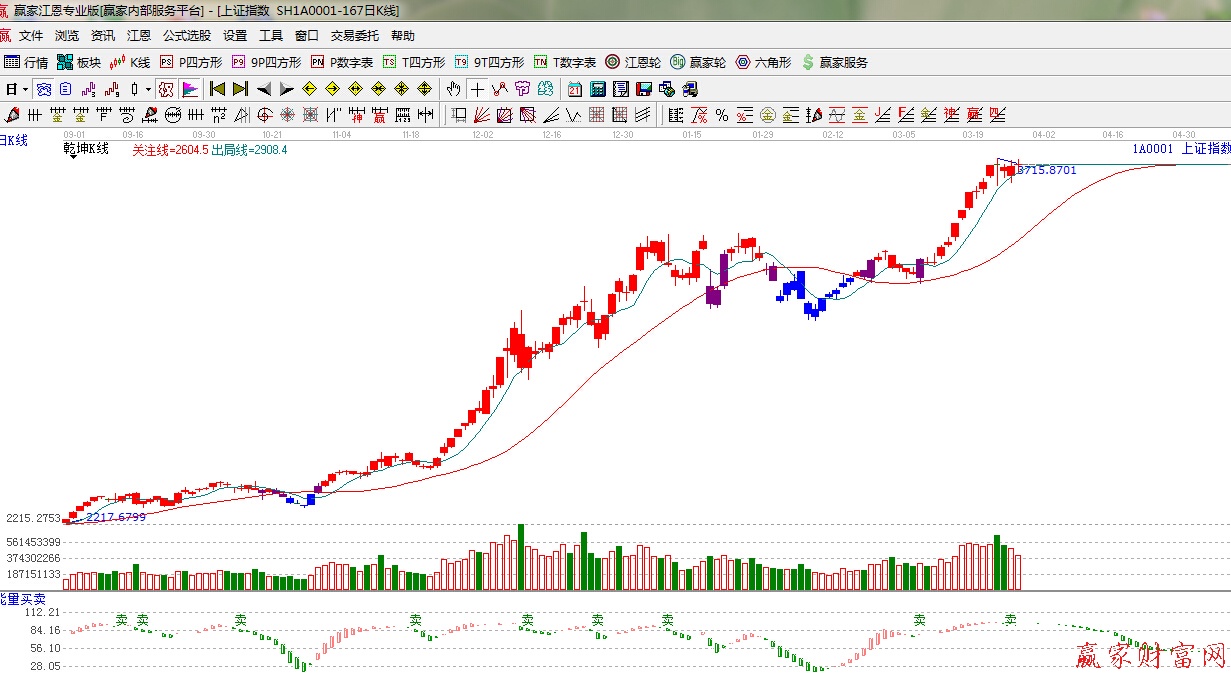 ★依據(jù)贏家江恩理論系統(tǒng)乾坤K線提示:紅色k線,關(guān)注綠色關(guān)注線的得失。