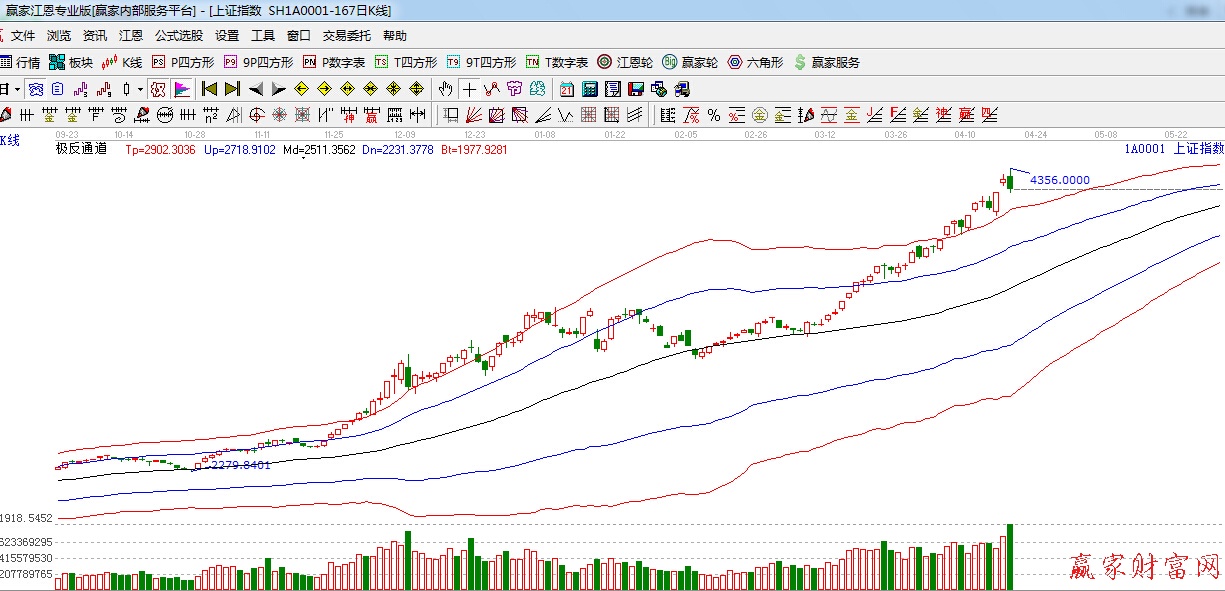 ★依據贏家江恩理論系統極反通道提示:極反通道紅色外軌線支撐上方,強勢震蕩,短期繼續謹慎看多。
