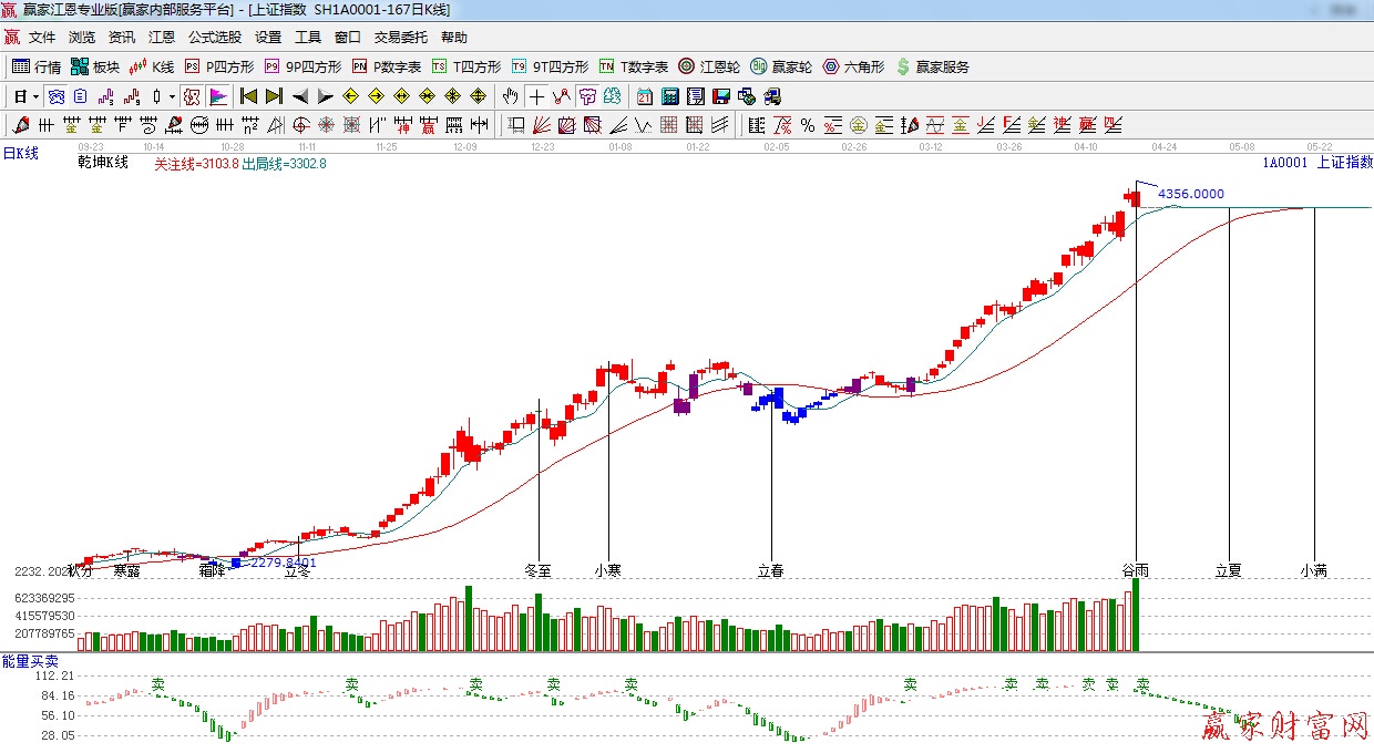 ☆依據贏家江恩理論系統能量買賣提示:有“賣”字出現,指標鈍化,謹慎看多。