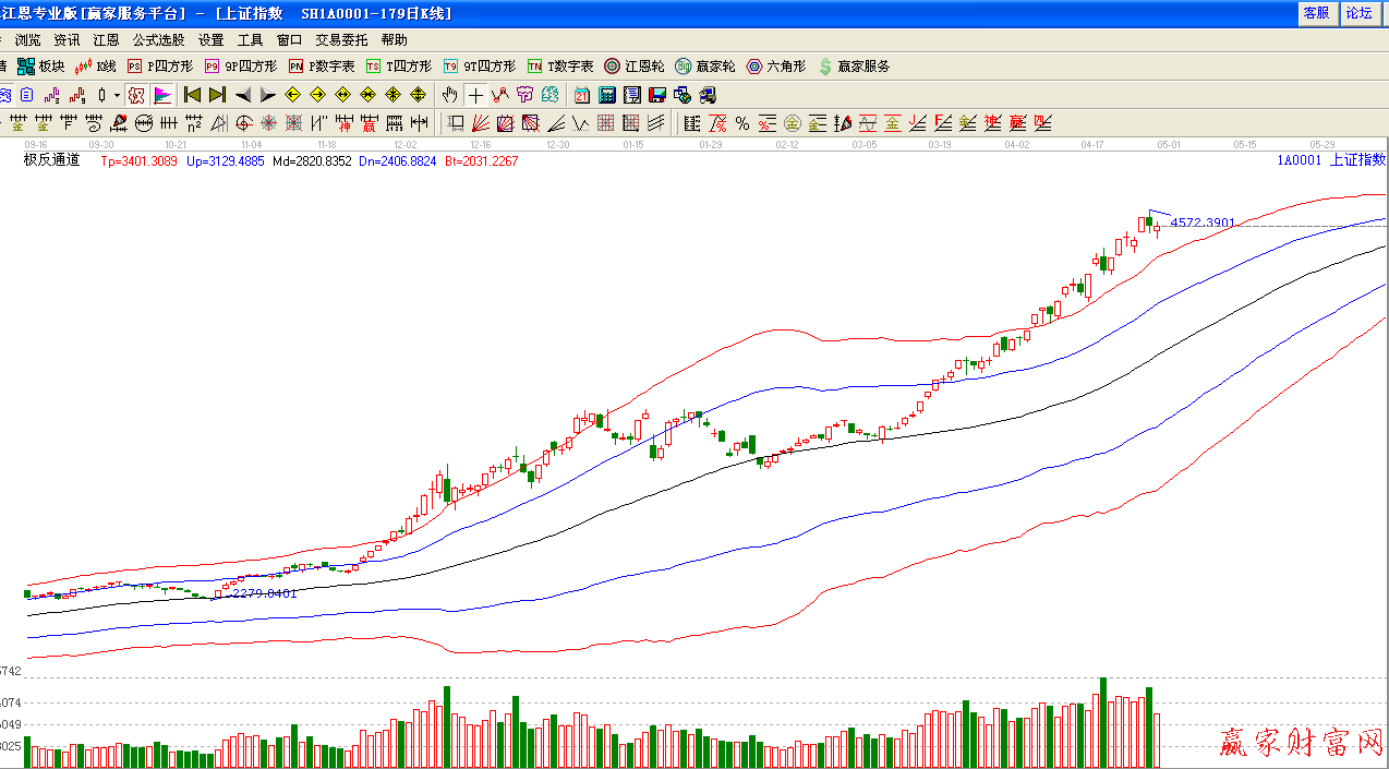 ★依據贏家江恩理論系統極反通道提示:紅色外軌超強區域,趨勢強勢,趨勢看多。