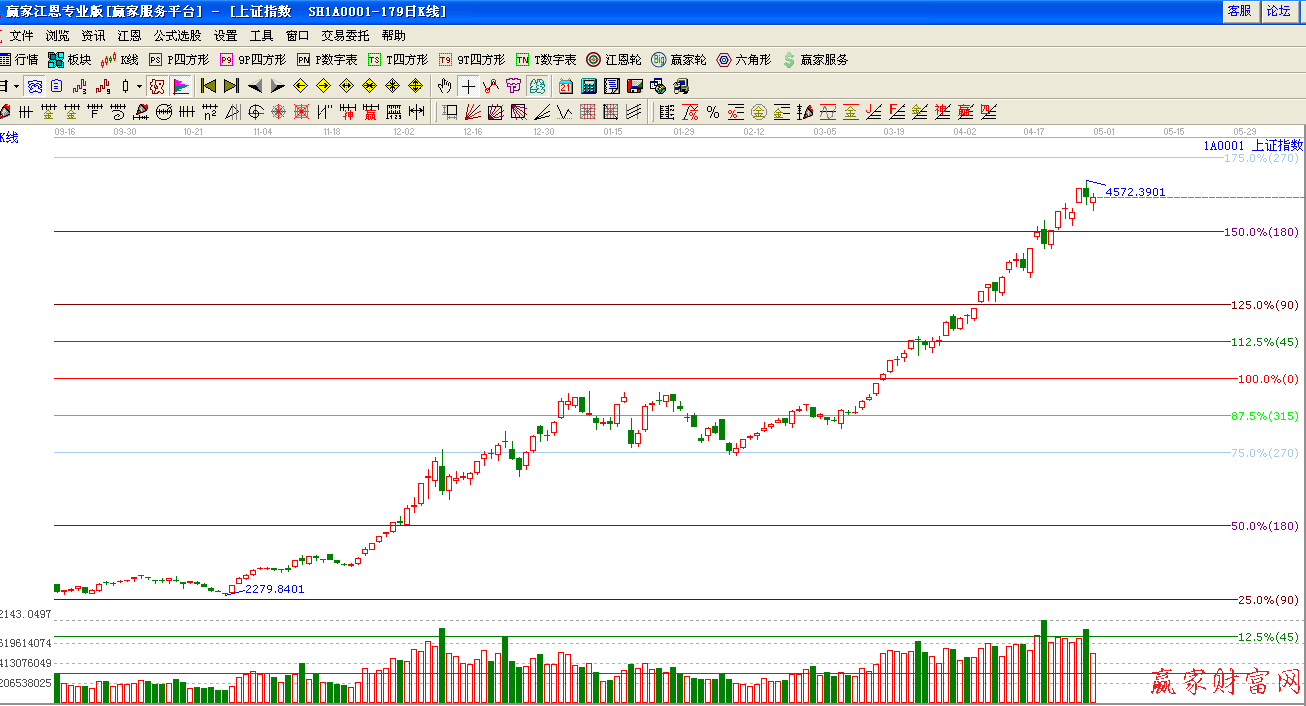 江恩看盤綜述:依據贏家江恩技術工具分析得出:今日盤面上,創業板和中小盤大幅反彈,金融權重表現低迷,市場中大盤藍籌小盤題材股如同蹺蹺板,承載著市場,由于近期市場連續上漲,積累了大量獲利盤,短期震蕩在所難免,依據工具分析,下方支撐180度4300點,此位置整理不破,整體趨勢不變,將繼續攻擊江恩270度4700點附近。操作上,建議投資者利用盤中震蕩機會,逢低介入近期漲勢相對落后的個股。