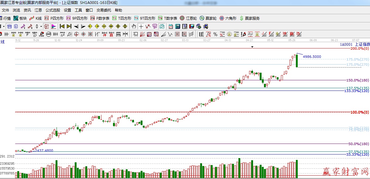 江恩看盤綜述:依據贏家江恩技術工具分析得出:周四受匯金減持銀行股的利空影響,兩市股指大幅殺跌,滬指重挫321點,今天的下跌是多項因素共同作用導致結果,但調整僅是在清理獲利盤,只要政策面不出臺大調控政策,市場在充沛的量能支撐下,指數回調空間及時間是都很有限,震蕩修復后依舊存在上漲的基礎,時間上下一窗口留意6月8日附近。操作上,布局標的方面更應避高就低,尋找那些有利好預期支撐,勿盲目追高。