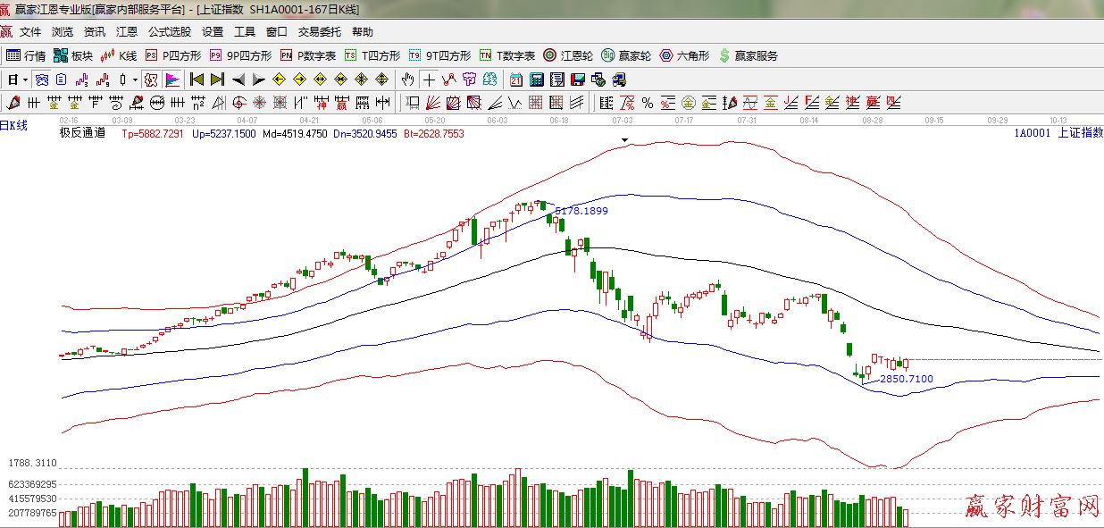 ☆依據(jù)贏家江恩理論系統(tǒng)極反通道提示:60分在弱勢(shì)外軌線位置橫盤震蕩,逐步推移至生命線附近,60分生命線阻力是3250點(diǎn)。