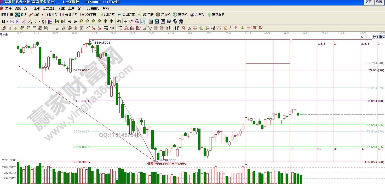 江恩看盤綜述:依據(jù)贏家江恩技術(shù)工具分析得出:滬指目前在60分極反通道生命線獲得支撐,尾盤在金融股配合下回升,周三早盤重點留意前60分走勢,反抽留意缺口阻力,關(guān)注成交量變化,如上攻無量,則仍需降低倉位。操作上,嚴(yán)格控制倉位,切莫追高操作。