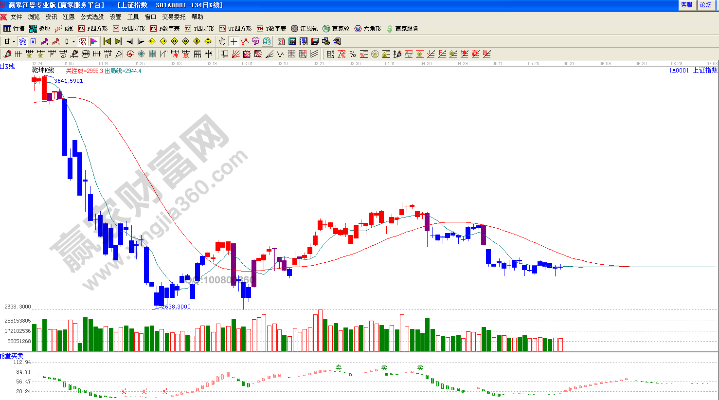 ☆依據贏家江恩理論系統乾坤K線提示:綠色休息區域,紅色關注線下方,空。