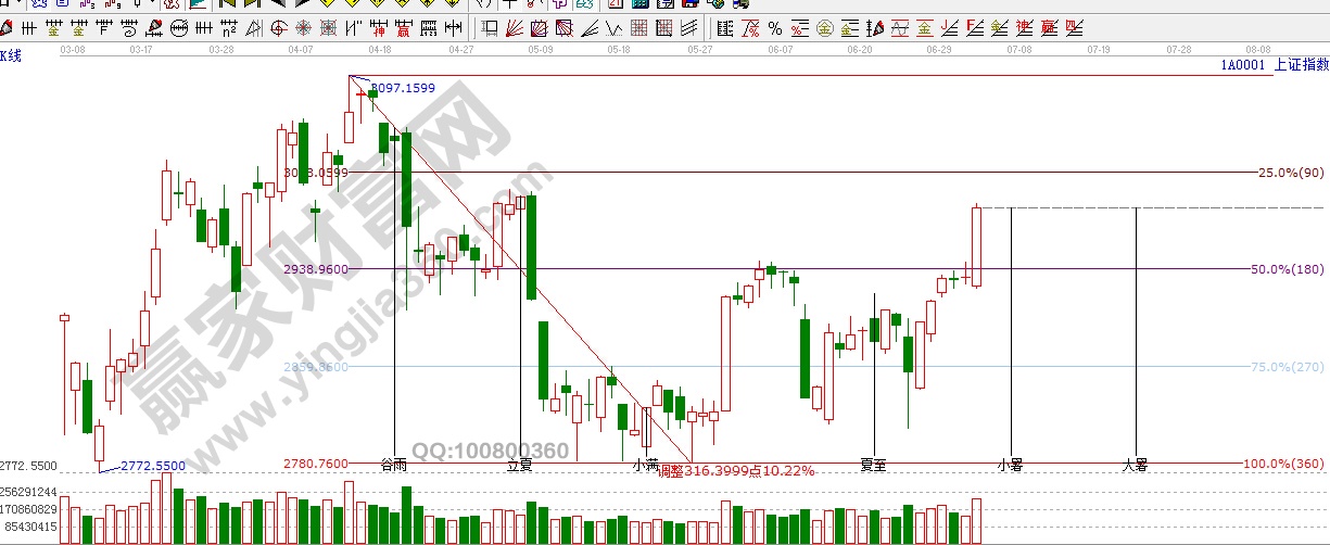 江恩看盤綜述:依據贏家江恩技術工具分析得出:周一,市場放量突破2800~2944點箱體頂部,接下來2944,2960點轉變為支撐,后續動能持續,將有望繼續上攻下一目標位江恩90度3018點附近,時間上留意小暑節氣7月7日附近,操作上,逢低可逐步加倉,重點關注中報高送轉標的外,還可積極跟蹤底部啟動的滯漲品種的補漲機會。