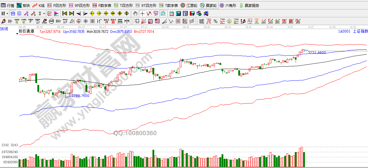 ★依據贏家江恩理論系統極反通道提示:滬指圍繞60分藍色上柜線強勢整理,15分周期支撐3200點,30分周期3180點附近,上方阻力位是日線3250點附近。